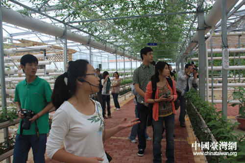 采訪團(tuán)記者興致勃勃地走進(jìn)現(xiàn)代農(nóng)業(yè)展示館。(中國(guó)臺(tái)灣網(wǎng) 王君飛 攝)