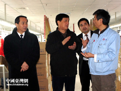 四川省臺(tái)辦主任劉俊杰在內(nèi)江市臺(tái)資企業(yè)巨騰國(guó)際有限公司考察調(diào)研。(圖片來(lái)源:四川省臺(tái)辦)