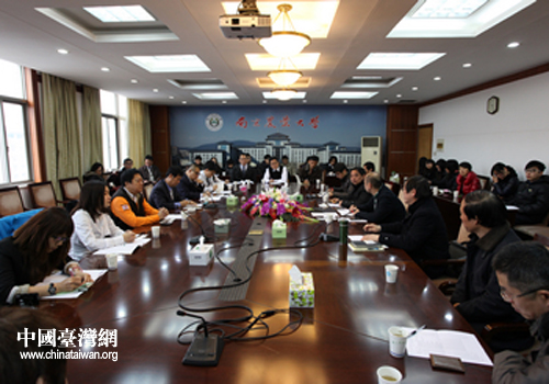 觀摩團(tuán)一行與南京農(nóng)業(yè)大學(xué)交流。(圖片來(lái)源:南京市臺(tái)辦)