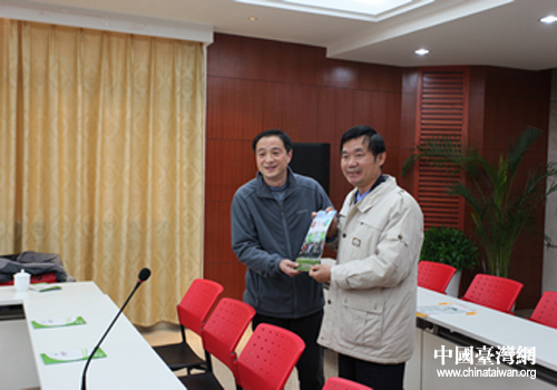 雙方互贈(zèng)禮品。(圖片來(lái)源:南京市臺(tái)辦)