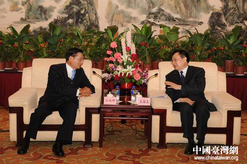 18日中午王國生在武昌會見江丙坤一行。(陸勝 攝)