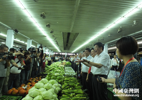 湖南省委副書記、省長徐守盛在花蓮縣縣長傅崐萁陪同下參觀花蓮縣吉安果菜市場。(圖片來源:湖南省臺辦)