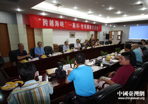 “跨越海峽”—嘉興·臺灣攝影交流會現(xiàn)場。(圖片來源:嘉興市臺辦)