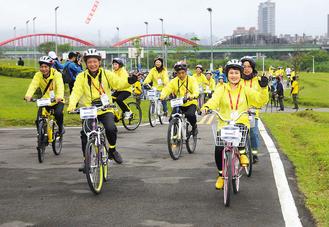 顏志榮昨天中午一馬當先,率領團員騎自行車從古亭河濱公園出發(fā),至華中露營場,騎程約5公里,漫游河濱公園,另一組“挑戰(zhàn)組”從大佳河濱公園出發(fā),騎完25公里。