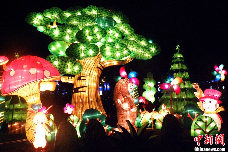 薈萃兩岸傳統(tǒng)文化的首屆海峽兩岸(昆山)中秋燈會9月14日晚首度試燈,當(dāng)晚60多組大型燈組、30萬平方米七大主題燈區(qū)美輪美奐。一組組流光溢彩的花燈呈現(xiàn)著兩岸相近的中秋民俗傳統(tǒng)、文化風(fēng)貌以及風(fēng)格各異的江南水鄉(xiāng)元素、臺灣媽祖文化等特色文化,兩岸民眾喜聞樂見的花卉、寓意吉祥的文化元素交相輝映。圖為浪漫游樂區(qū)燈組熊出沒,以國產(chǎn)動畫片《熊出沒》為主題,可愛的動漫人物、轉(zhuǎn)動的風(fēng)車帶來叢林的無窮歡樂。黃瑩 攝