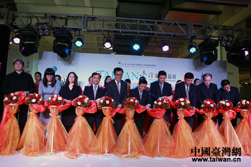 “臺灣文創(chuàng)精品館”7日在第八屆北京國際文化創(chuàng)意產(chǎn)業(yè)博覽會上正式開館,圖為與會嘉賓為開館剪彩。(中國臺灣網(wǎng) 王偉 攝)