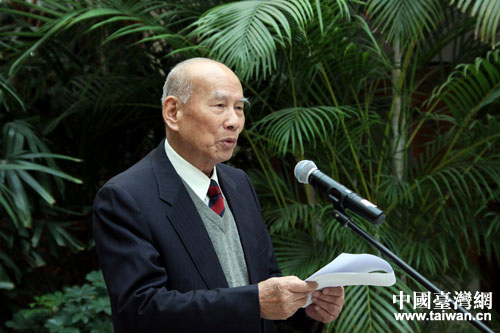 黃埔軍校同學(xué)會(huì)秘書長(zhǎng)杭元祥主持茶話會(huì)。(中國(guó)臺(tái)灣網(wǎng) 王偉 攝)