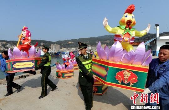 當(dāng)日,福州連江縣黃岐臺(tái)輪停泊點(diǎn)碼頭上,走馬燈、八駿圖、馬年特制花燈、媽祖女神燈、新春喜慶燈等已依次卸下車,擺放整齊。福州連江黃岐邊防派出所官兵,正協(xié)助工作人員將贈(zèng)送馬祖同胞的包括馬年生肖花燈在內(nèi)的中華傳統(tǒng)文化燈(十二生肖),搬運(yùn)裝船。