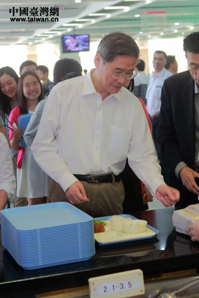 張志軍與臺(tái)灣學(xué)生一同排隊(duì)打飯(中國(guó)臺(tái)灣網(wǎng) 于斯文 攝)