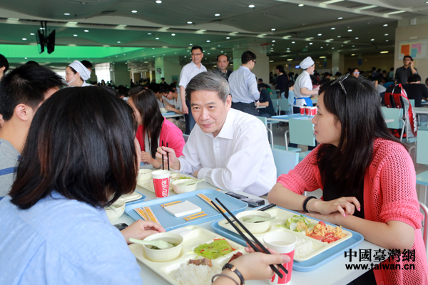 中國(guó)臺(tái)灣網(wǎng)5月15日杭州消息 中共中央臺(tái)辦、國(guó)務(wù)院臺(tái)辦主任張志軍15日中午來到浙江大學(xué),與在這里就讀的臺(tái)灣學(xué)生一同排隊(duì)打飯,并在食堂餐敘。(中國(guó)臺(tái)灣網(wǎng)記者于斯文)