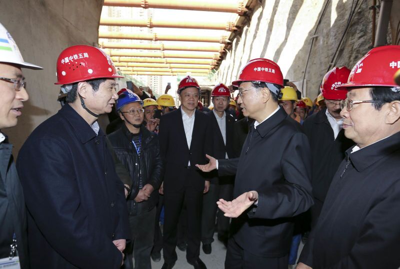 14日,李克強(qiáng)來到貴陽輕軌1號(hào)線施工現(xiàn)場(chǎng),考察城市基礎(chǔ)設(shè)施建設(shè)?偫泶魃习踩弊哌M(jìn)隧道,詢問工程進(jìn)度。多數(shù)施工者來自農(nóng)村,李克強(qiáng)稱贊他們是城市功臣。他叮囑省領(lǐng)導(dǎo),等這條輕軌修通后,你們一定要請(qǐng)回這些一線建設(shè)者,乘坐首班列車。