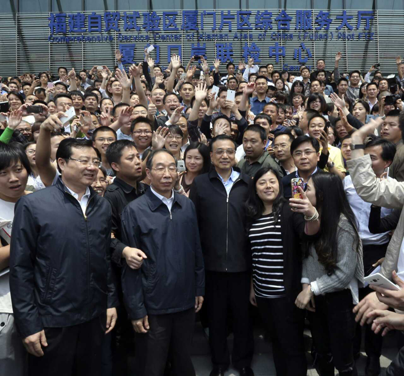 【福建自貿(mào)區(qū)廈門片區(qū):總理來了!】4月22日,李克強(qiáng)來到掛牌剛剛一天的福建自貿(mào)區(qū)廈門片區(qū),在象嶼綜合服務(wù)大廳考察自貿(mào)區(qū)改革經(jīng)驗(yàn)推廣落地、簡(jiǎn)政放權(quán)等情況。從兩年前力推上海自貿(mào)區(qū)成立,到自貿(mào)區(qū)再結(jié)“三碩果”,再到總理本次基層調(diào)研,李克強(qiáng)的考察足跡已遍及上海、天津、廣東、福建四個(gè)自貿(mào)區(qū)。