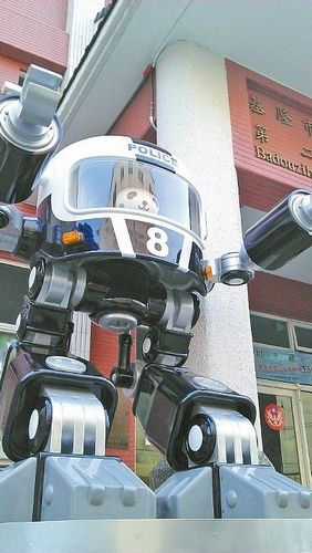 擺設在基隆警分局的大型警察公仔。來源:臺灣《聯(lián)合報》