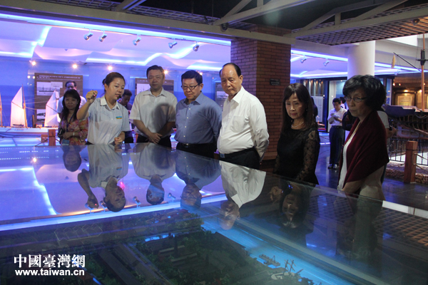 24日下午,海協(xié)會會長陳德銘夫婦與;鶗麻L林中森夫婦一起在福州馬尾參觀了中國船政文化博物館。圖為一行人參觀馬尾船政模型。(張潔 攝)