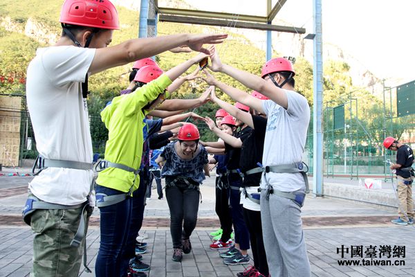 今年的“喜樂會”活動在門頭溝區(qū)雁翅素質教育基地開展,參與的臺生與臺籍大學生們通過參與攀巖、“求生墻”、“云中漫步”等戶外拓展活動,了解了彼此,建立了友誼。
