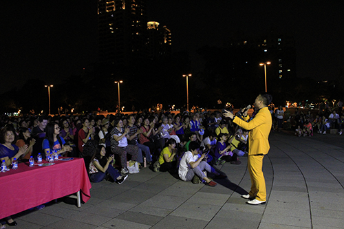 表演在高雄市文化中心廣場舉行。表演開始前,慕名前來觀看表演的人們已經(jīng)把廣場圍了個水泄不通。隨著表演進(jìn)行,越來越多的人們圍了過來,不僅現(xiàn)場準(zhǔn)備的座位座無虛席,連地上都坐滿了人。據(jù)不完全統(tǒng)計,當(dāng)晚到場的觀眾達(dá)一千多人。