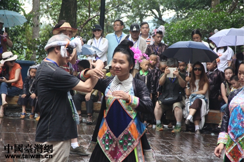 中國(guó)臺(tái)灣網(wǎng)7月14日黔東南訊 (記者 蕪?fù)?“情系多彩貴州——兩岸文化聯(lián)誼行”活動(dòng)進(jìn)入第三天,兩岸文化界人士來(lái)到貴州黔東南苗族侗族自治州從江縣岜沙苗寨,展開一場(chǎng)民族風(fēng)情之旅。
