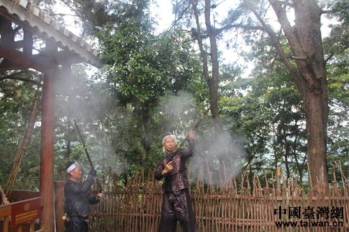 岜沙在寨子門口鳴槍歡迎兩岸嘉賓(中國(guó)臺(tái)灣網(wǎng) 蕪?fù)?攝)