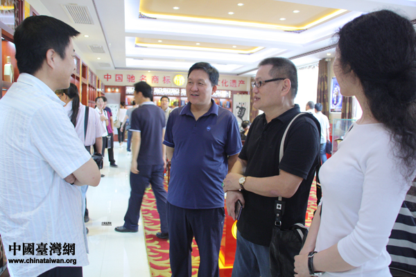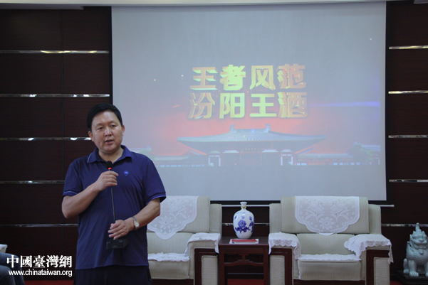 汾陽王酒業(yè)有限公司董事長王再武向臺灣記者介紹企業(yè)發(fā)展情況。(中國臺灣網(wǎng) 楊永青 攝)