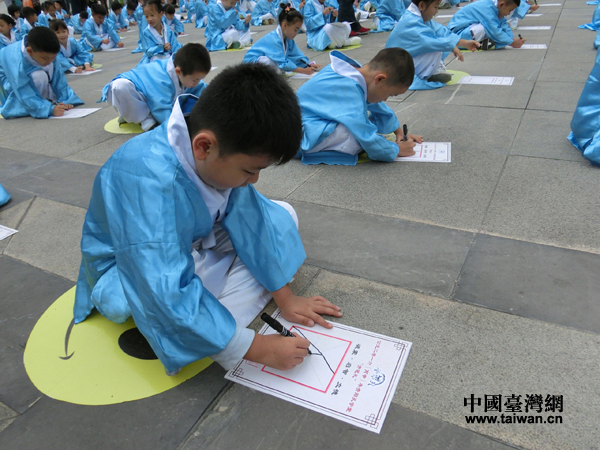 中國(guó)臺(tái)灣網(wǎng)9月28日貴陽(yáng)訊(記者 王文英)今天,在孔子誕辰2567周年之際,貴陽(yáng)孔學(xué)堂2016(丙申)年祭孔大典暨“開(kāi)筆禮”在孔學(xué)堂禮儀廣場(chǎng)舉行。來(lái)自第七屆兩岸漢字藝術(shù)節(jié)的兩岸藝術(shù)家代表、學(xué)者代表、師生代表及有關(guān)領(lǐng)導(dǎo)一千余人齊聚貴陽(yáng)孔學(xué)堂,祭祀先師孔子,以追思先賢,蒙童開(kāi)筆啟智,以崇德立志。