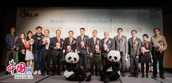 11月4日晚,四川旅游營銷代表團在臺北舉辦了“熊貓走世界-美麗中華”四川旅游推介會,現(xiàn)場嘉賓以及臺北當?shù)芈眯猩、媒體等約100人參會。臺北旅行商業(yè)同業(yè)公會理事長吳志健、臺灣品質(zhì)保障協(xié)會副理事長陳善國分別致辭,他們希望此次活動向臺灣民眾展現(xiàn)四川豐富的旅游資源,推出更多的旅游產(chǎn)品,更好地讓臺灣民眾感受四川獨特的自然風(fēng)光、歷史文化和民族風(fēng)情。
