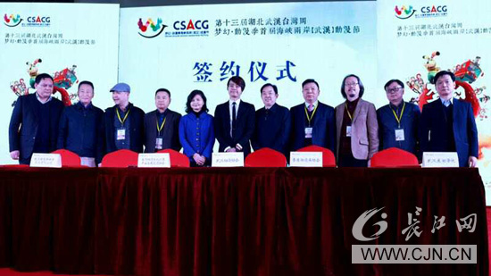 隨后,主持人邀請海峽兩岸機(jī)構(gòu)及企業(yè)代表上臺(tái)進(jìn)行簽約儀式。余培俠等嘉賓上臺(tái)見證。武漢動(dòng)漫協(xié)會(huì)與臺(tái)灣動(dòng)漫文化創(chuàng)意產(chǎn)業(yè)發(fā)展交流協(xié)會(huì)、武漢東湖學(xué)院與香港動(dòng)漫畫協(xié)會(huì)、武漢博潤通文化科技股份有限公司與臺(tái)灣冉色斯動(dòng)畫股份有限公司六家單位分別簽署戰(zhàn)略合作協(xié)議,將在行業(yè)組織協(xié)作、產(chǎn)學(xué)研交互融合、業(yè)務(wù)拓展開發(fā)等方面開展廣泛合作與對接。見證嘉賓表示,簽約儀式象征著海峽兩岸動(dòng)漫文化創(chuàng)意產(chǎn)業(yè)融合發(fā)展的新起點(diǎn)。