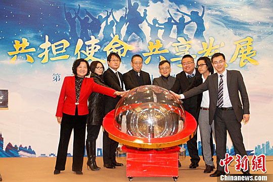 11月29日,兩岸青年創(chuàng)業(yè)資訊服務(wù)平臺(tái)啟動(dòng)儀式在北京舉行,臺(tái)灣青年赴大陸創(chuàng)業(yè)資訊包正式上線。圖為兩岸嘉賓共同啟動(dòng)資訊包。當(dāng)天,民革中央在北京發(fā)起成立兩岸青年創(chuàng)新大聯(lián)盟。中新社記者 陳小愿 攝