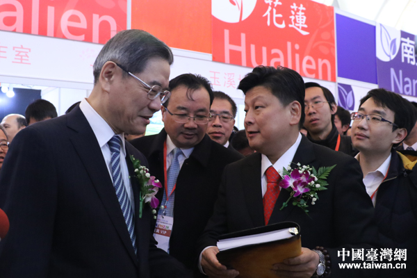 12月24日,臺(tái)灣8縣市農(nóng)特產(chǎn)品展銷暨旅游推介洽談會(huì)在北京展覽館舉行。中共中央臺(tái)辦、國(guó)務(wù)院臺(tái)辦主任張志軍,北京市人民政府副市長(zhǎng)王寧,中國(guó)國(guó)民黨副主席陳鎮(zhèn)湘、臺(tái)灣新北、新竹、苗栗、花蓮、南投、臺(tái)東、金門(mén)及連江等縣市負(fù)責(zé)人共同出席開(kāi)幕式等活動(dòng)。(中國(guó)臺(tái)灣網(wǎng) 朱煉 攝)