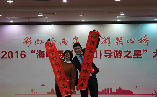 12月31日,2016年海峽兩岸(廈門)導游之星大賽在廈門圓滿落幕。此次大賽匯聚24名來自廈門、臺灣的選手共同參與,加深兩岸導游業(yè)界的交流。大賽比技巧,拼服務,重交流,在內(nèi)容和形式上,更加注重促進兩岸導游技能和服務方面深度交流與合作;在獎項設置上,兩岸選手既有合作又有競爭,將海峽兩岸一衣帶水的深厚情誼娓娓道來。兩岸導游通過大賽實現(xiàn)旅游交流新突破,探索兩岸旅游交流合作新經(jīng)驗。