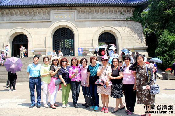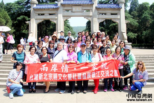 臺(tái)灣新北市宗親文化暨社區(qū)發(fā)展鎮(zhèn)江交流團(tuán)成員在中山陵合影。(中國(guó)臺(tái)灣網(wǎng) 李杰 攝)