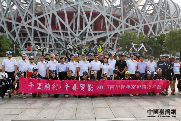 中國(guó)臺(tái)灣網(wǎng)9月13日北京訊。ㄓ浾 高旭)9月13日,以“千里騎行·青春留影”為主題的2017兩岸青年京滬騎行之旅在北京圓滿(mǎn)收官。海峽兩岸關(guān)系協(xié)會(huì)會(huì)長(zhǎng)陳德銘、國(guó)務(wù)院臺(tái)灣事務(wù)辦公室副主任鄭柵潔、上海市人民政府臺(tái)灣事務(wù)辦公室主任李文輝、國(guó)臺(tái)辦經(jīng)濟(jì)局副局長(zhǎng)鄭慷、北京市人民政府臺(tái)灣事務(wù)辦公室副主任杜德平、全國(guó)臺(tái)灣同胞投資企業(yè)聯(lián)誼會(huì)常務(wù)副會(huì)長(zhǎng)兼秘書(shū)長(zhǎng)程金中、上海市海峽交流促進(jìn)會(huì)會(huì)長(zhǎng)李雷鳴、上海市臺(tái)灣同胞投資企業(yè)協(xié)會(huì)會(huì)長(zhǎng)李政宏等領(lǐng)導(dǎo)嘉賓出席收官儀式。國(guó)臺(tái)辦副主任鄭柵潔、上海市臺(tái)協(xié)會(huì)長(zhǎng)李政宏分別致辭,向京滬騎行圓滿(mǎn)收官表示祝賀。