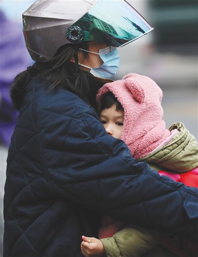 1月8日,?诮诸^,一位小朋友依偎在大人懷中。