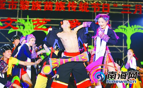 為慶祝黎族、苗族同胞的傳統(tǒng)節(jié)日“三月三”,三亞市27日在“夢里黎鄉(xiāng)”檳榔河旅游區(qū)舉行了一場晚會以及一系列民族風(fēng)俗競技活動,10萬市民和游客涌進(jìn)檳榔河,載歌載舞盡情聯(lián)歡。