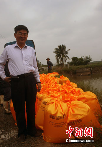 28日,臺(tái)資海南新海洋水產(chǎn)有限公司總經(jīng)理劉財(cái)添,迎來(lái)海南省政府支持災(zāi)后恢復(fù)生產(chǎn)的第一批魚(yú)苗。 作者:關(guān)向東