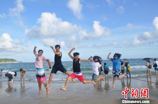 來自臺灣臺南嘉南藥理科技大學(xué)、臺灣大學(xué)、臺灣成功大學(xué)等大學(xué)的32名青年學(xué)生和11名海南大學(xué)的營員們?nèi)涨皡⒂^三亞蝴蝶谷,踏上了天下第一灣亞龍灣的細軟沙灘。