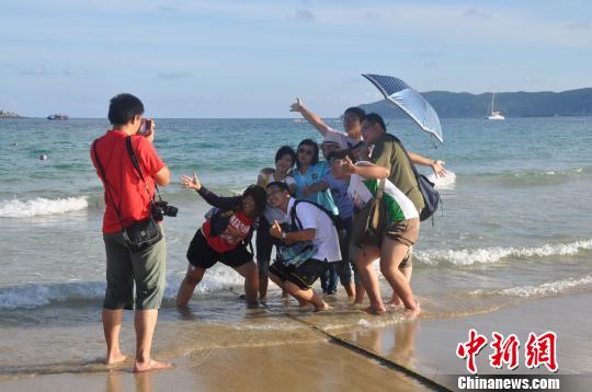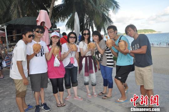 臺北海南同鄉(xiāng)會的青年學(xué)生在亞龍灣合影!≈茗P婷 攝