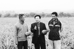 說著,大家一起走到許新宗的地里察看那些正在生長的菠蘿苗!斑@是我們新引進(jìn)的臺農(nóng)16號,也叫‘甜蜜蜜’。”“這名字好,愿我們的生活也都甜蜜蜜!”大家的笑聲傳得很遠(yuǎn)。