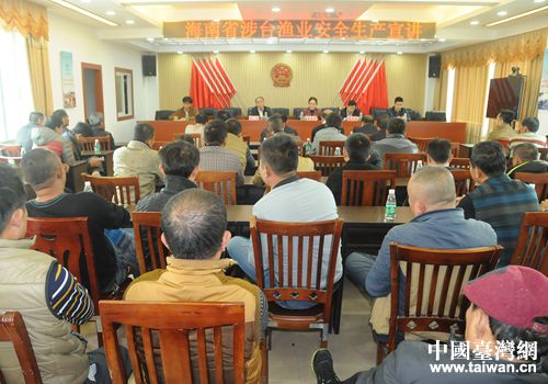 中國臺灣網(wǎng)1月3日瓊海訊 12月29日下午,由海南省臺辦和省海洋與漁業(yè)廳聯(lián)合舉辦的“海南涉臺漁業(yè)安全生產(chǎn)宣講”在千年漁港——瓊海市潭門鎮(zhèn)舉行,潭門鎮(zhèn)鎮(zhèn)長甘杰、當(dāng)?shù)貪O民及漁政工作人員近100人參加活動。