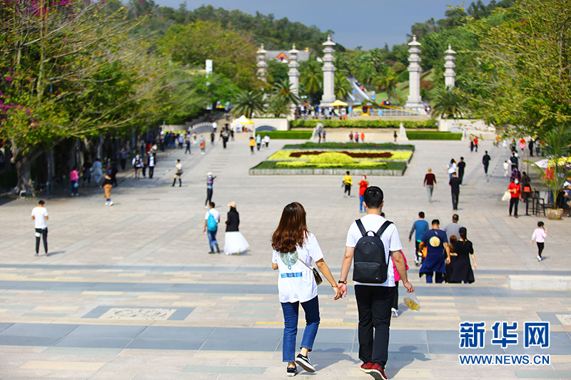 1月10日,游客在三亞南山文化旅游區(qū)游覽。新華網(wǎng)發(fā)(陳文武 攝)