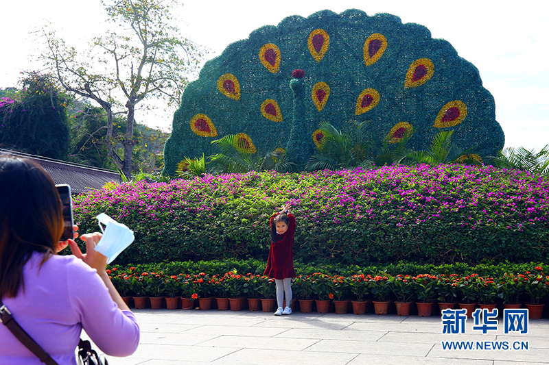1月10日,家長(zhǎng)帶著孩子在三亞南山文化旅游區(qū)游玩、拍照。新華網(wǎng)發(fā)(陳文武 攝)