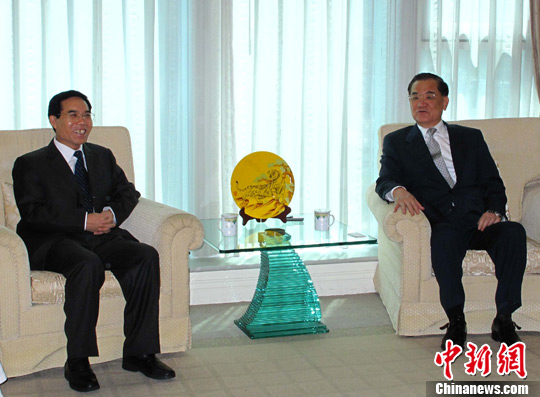 8月27日,河北文化寶島行活動(dòng)在臺(tái)北正式啟動(dòng),河北省委常委、宣傳部長(zhǎng)聶辰席率河北省文化代表團(tuán)一行百余人將在臺(tái)灣進(jìn)行為期一周的文化交流及展演活動(dòng)。圖為中國(guó)國(guó)民黨榮譽(yù)主席連戰(zhàn)(右)在臺(tái)北會(huì)見(jiàn)聶辰席(左)一行。中新社發(fā)路梅 攝