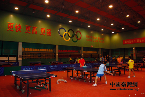 正定國家乒乓球訓練館內正在訓練的選手們。(中國臺灣網 焦源源 攝)