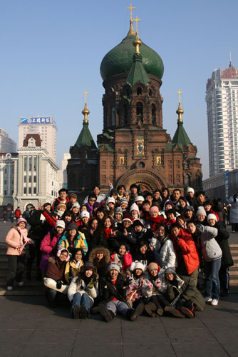 哈爾濱索菲亞教堂前合影