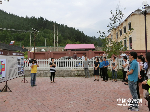 1橫道河子歷史文化名鎮(zhèn)有關(guān)同志向記者們介紹該鎮(zhèn)基本情況(中國臺灣網(wǎng) 王文英 攝)