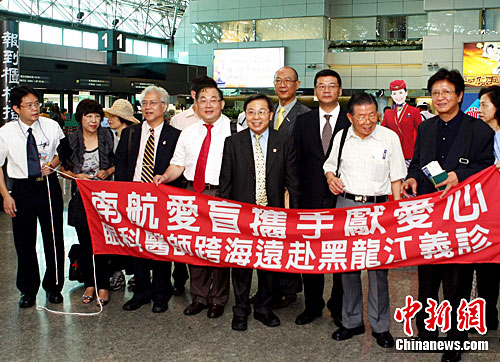 7月13日,臺(tái)灣愛盲協(xié)會(huì)13位醫(yī)師愛心人士組成的醫(yī)療團(tuán),從臺(tái)灣桃園機(jī)場(chǎng)乘坐中國南方航空公司臺(tái)灣分公司免費(fèi)提供的航空服務(wù),前往黑龍江省,在7天時(shí)間里為哈爾濱、齊齊哈爾等地350名貧困白內(nèi)障人士實(shí)施手術(shù)并贈(zèng)送優(yōu)質(zhì)人工水晶體,使患者重獲光明。中新社發(fā) 宋吉河 攝