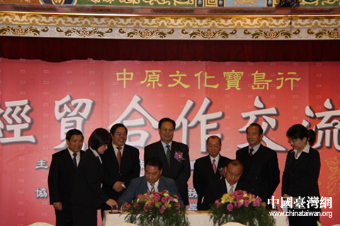 另據(jù)了解,當(dāng)天下午,河南企業(yè)與90多家臺(tái)灣企業(yè)在圓山大飯店就采購臺(tái)貨進(jìn)行了一對(duì)一的洽談對(duì)接,已達(dá)成合同、協(xié)議39項(xiàng),商品金額3.54億美元。曹維新出席簽約儀式。