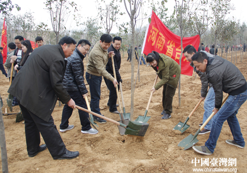 植樹造林活動現(xiàn)場。(圖片來源:河南省臺辦)