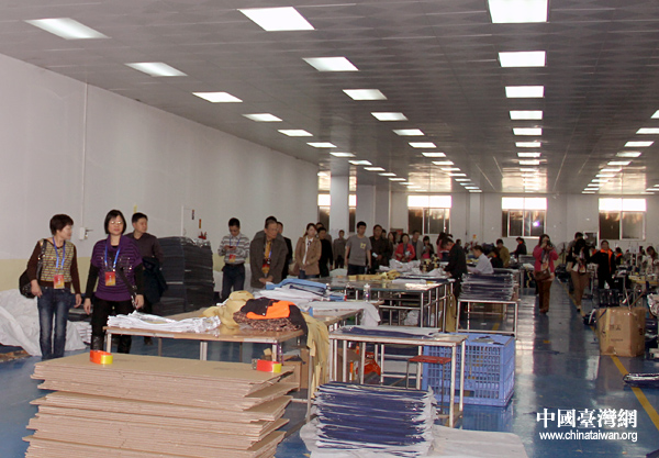 由來自臺灣和大陸的十多家媒體組成的參訪團一行走進河南信陽市唐河臺商投資園區(qū),實地參觀考察了多家臺企在中原地區(qū)投資發(fā)展的情況。圖為記者們參觀臺企生產(chǎn)車間。(中國臺灣網(wǎng) 普燕 攝)