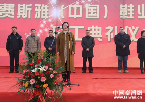 中國(guó)臺(tái)灣網(wǎng)1月10日周口訊 1月9日上午,臺(tái)資費(fèi)斯雅高端制鞋項(xiàng)目開(kāi)工儀式在周口市西華縣舉行。意大利費(fèi)斯雅品牌亞洲區(qū)副總裁恩地,周口市委常委、統(tǒng)戰(zhàn)部長(zhǎng)方婷、商務(wù)局局長(zhǎng)閆淑娟、西華縣縣長(zhǎng)田慶杰等出席開(kāi)工儀式。方婷下達(dá)開(kāi)工令。