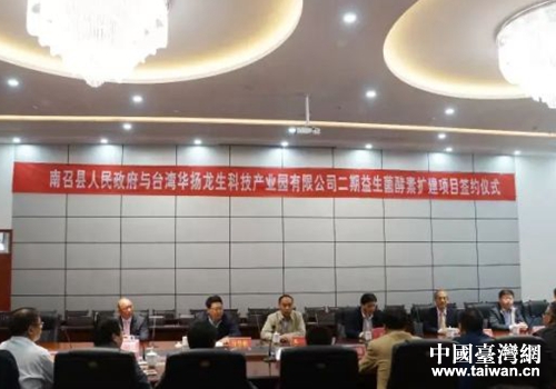中國臺灣網(wǎng)4月20日南召訊 4月18日上午,南召縣人民政府與臺灣華揚龍生科技產(chǎn)業(yè)園有限公司舉行二期益生菌酵素擴建項目簽約儀式,南召縣相關(guān)領(lǐng)導(dǎo),臺灣華揚龍生科技產(chǎn)業(yè)園董事長許正郎、總經(jīng)理李恒等出席簽約儀式。